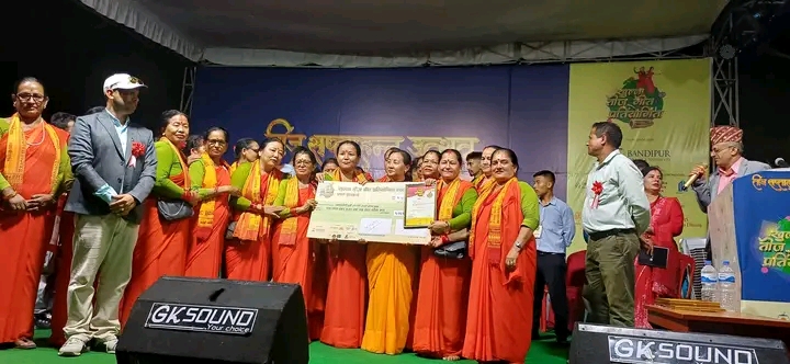 दमौली । तनहुँको बन्दीपुर केवलकार खुल्ला तीज गीत प्रतियोगितामाको प्रथम पुरस्कार व्यास ज्योति धर्म जागरण समुहले चुम्न सफल भएको छ । प्रतियोगितामा सहभागी २८ वटा समूहलाई पछि पार्दै ३७० दशमलव ४ अंङ्क प्राप्त गरी पहिलो पुरस्कार हात पारेको हो । मंगलबार भएको फाइनल प्रतियोगितामा आठ समुह प्रतिस्पर्धामा थिए ।