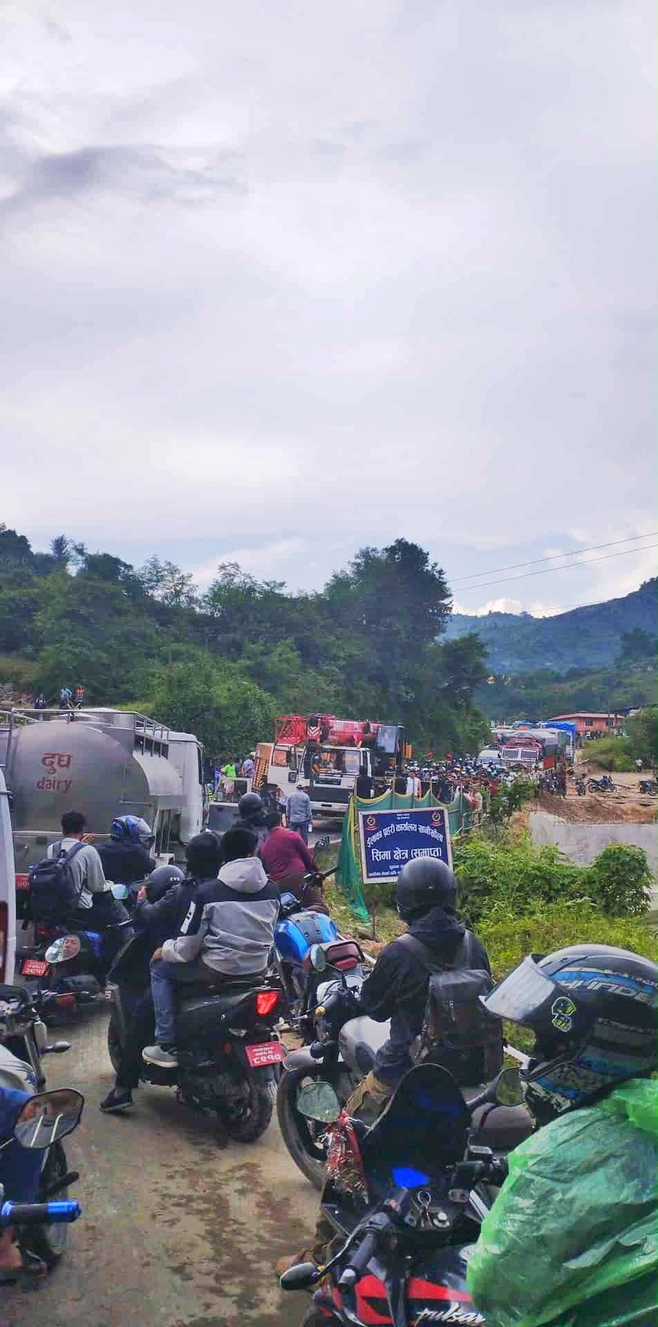 मुग्लिङ-काठमाण्डाै सडक खण्ड अन्तरगत सिम्ले नजिक काेइरालेमा दुर्घटनामा परेकाे ट्रकलाई निकाल्न झण्डै २घण्टा देखि ठप्पै जाम लागेकाे छ ।