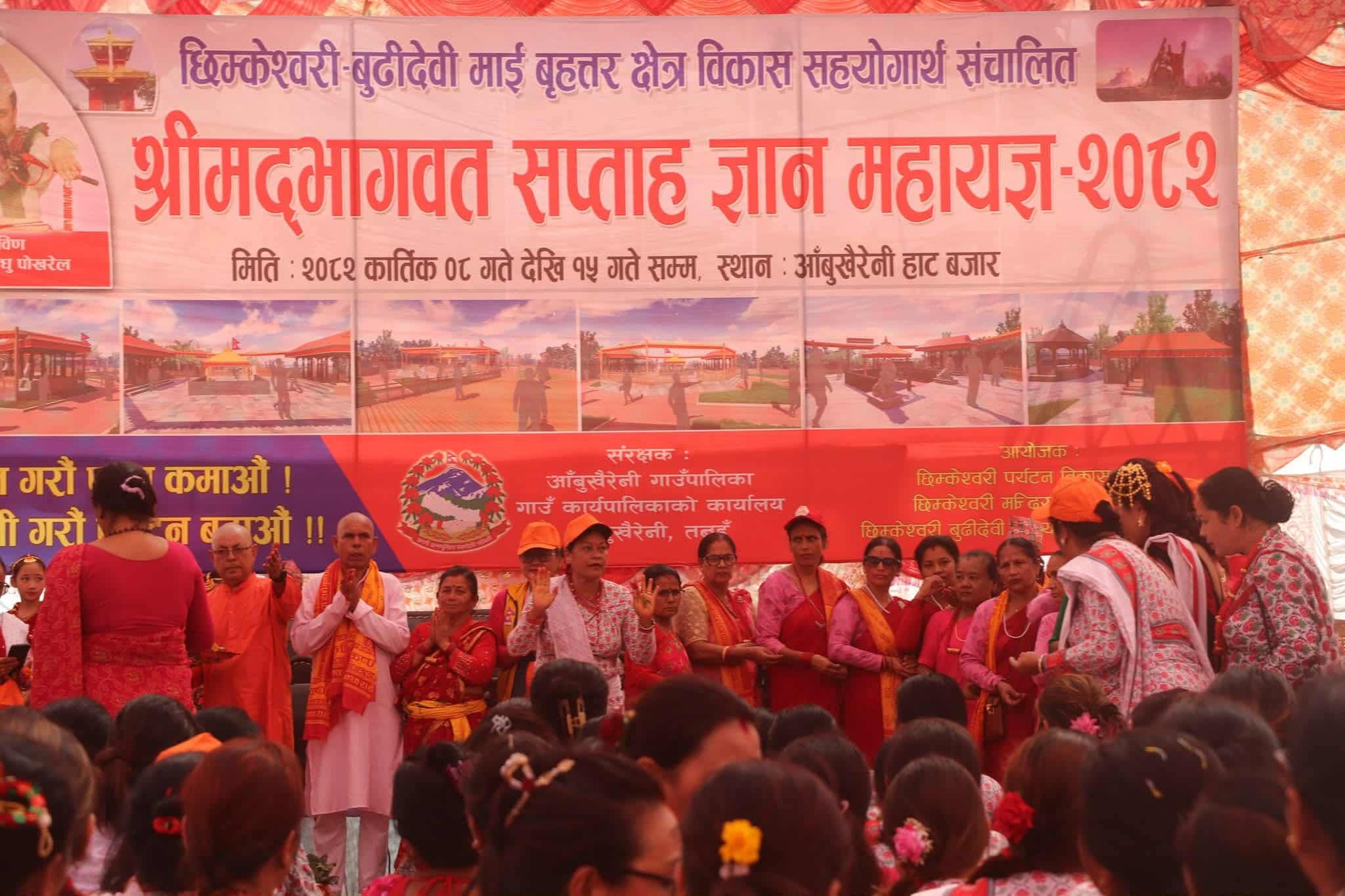 महायज्ञ छिम्केश्वरी–बुढीदेवी श्रीमद्भागवत सप्ताह ज्ञान महायज्ञ मूल समारोह समिति, छिम्केश्वरी पर्यटन विकास समिति, मन्दिर संरक्षण समिति र आँबुखैरेनी गाउँपालिकाको संरक्षकत्वमा आयोजना गरिएको हो।