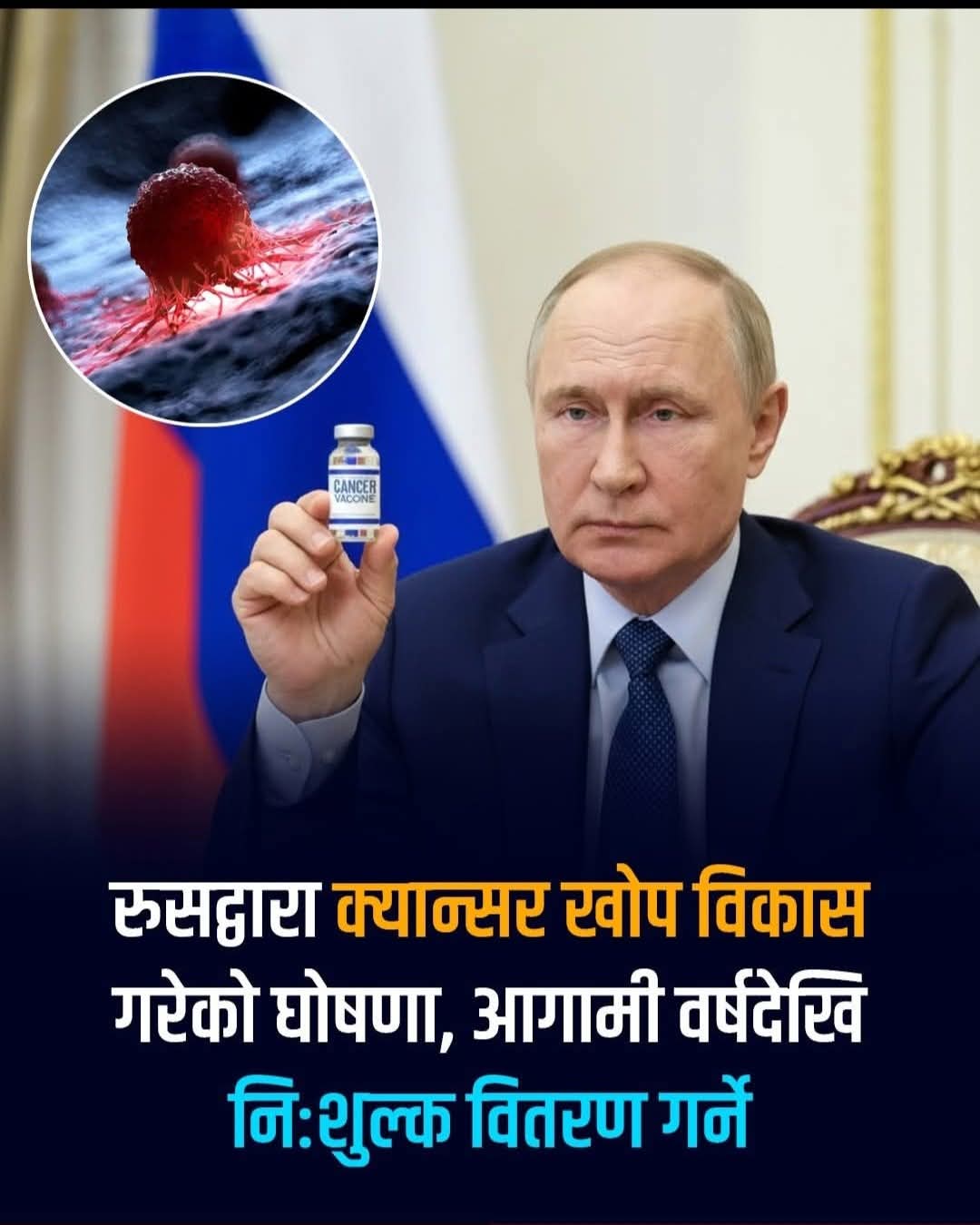 ३ बर्ष देखि युक्रेन र पश्चिमा शक्तिसँगको अघोषित युद्धको चपेटामा परेपनि आधुनिक चिकित्सा क्षेत्रमा क्यान्सर रोग प्रतिरोधात्मक खोपको आविष्कारले बिश्वका शक्तिशाली मुलुक पनि झस्किएका छन् ।रुसको प्रगतिशील बिकास र कामले।
