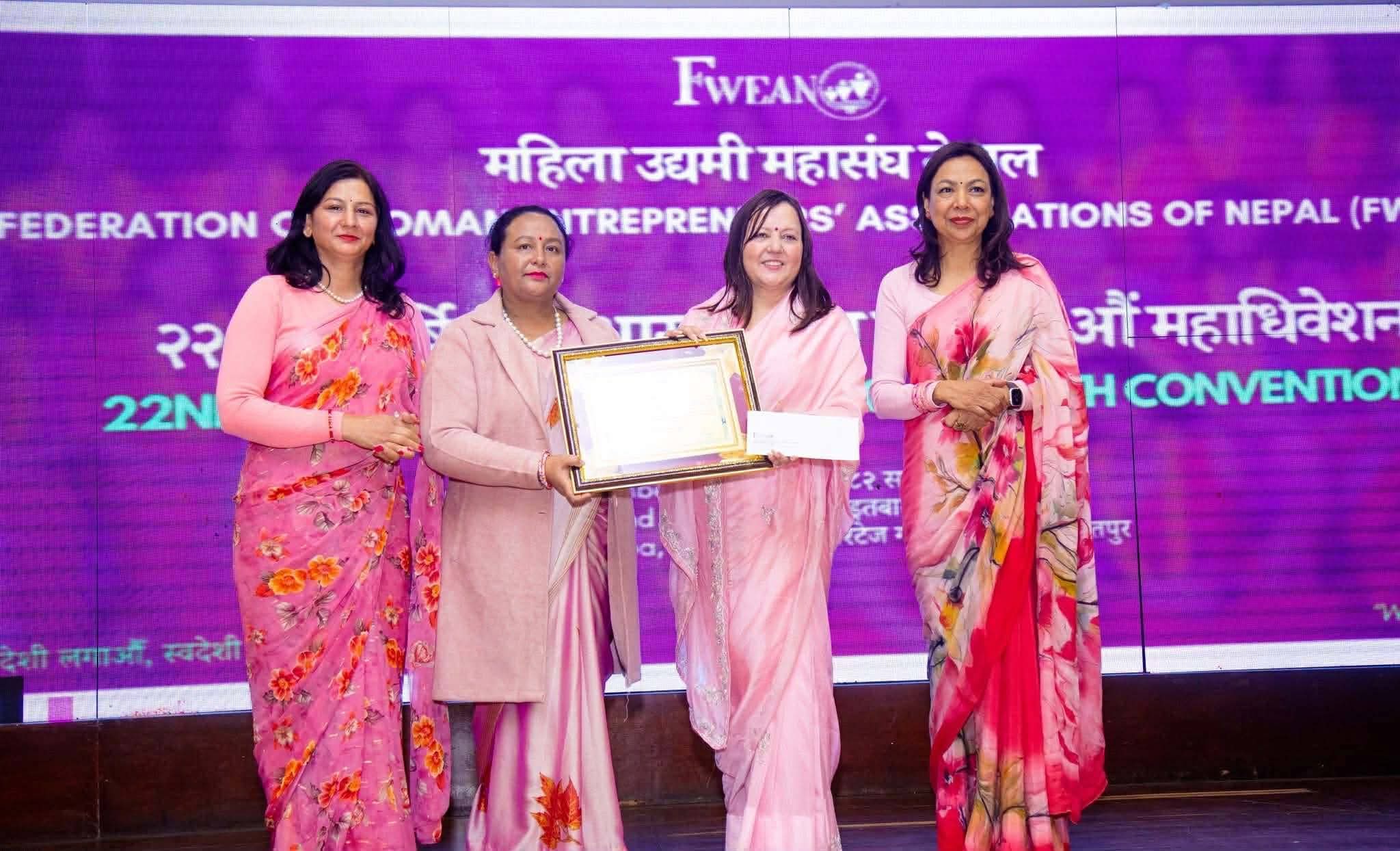 यो सम्मान-पत्र मिति २०८२ साल पौष ६ र ७ गते काठमाडौँमा आयोजित महाधिवेशनको विशेष समारोहका बीच प्रदान गरिएको थियो। सम्मान-पत्रमा महिला उद्यमी महासंघ नेपालकी अध्यक्ष शोभा ज्ञवाली र तृतीय उपाध्यक्ष तथा जिल्ला विस्तार एवं सञ्जाल समितिकी संयोजक बासन्ती प्रधानको हस्ताक्षर रहेको छ।