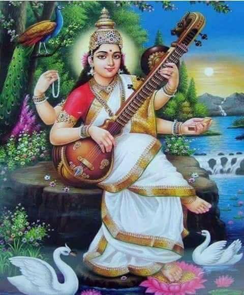 सरस्वती माया दृष्टा विणा पुस्तकधारिणी।